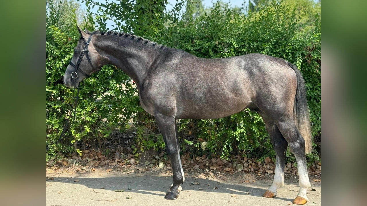 Father: CORNADO II Grandpa: ALICANTE III Price: Chat with the seller Horse KWPN 4 annual, 11 monthly, 14 daily Gray Stallion 172 cm Show jumping Hungary Hungary 4 image from