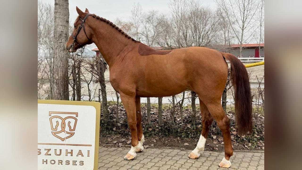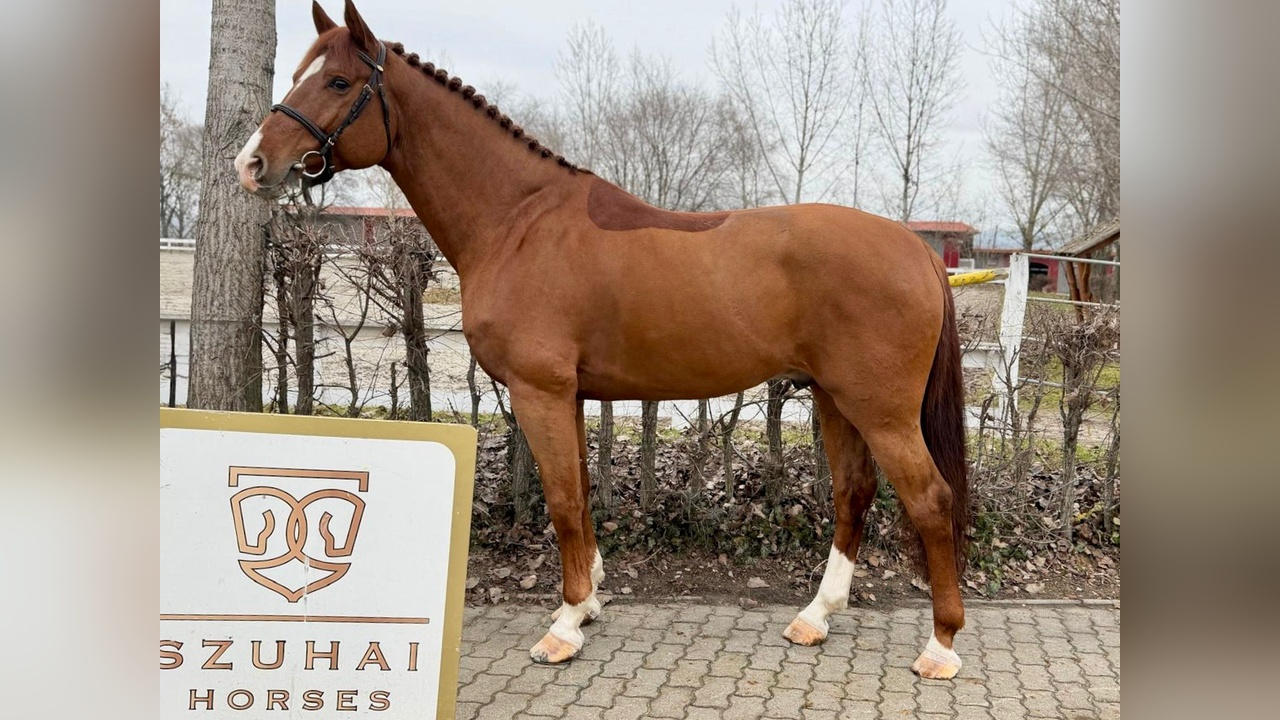 Father: CASALL Grandpa: NABAB DE REVE Price: Chat with the seller Horse Zangersheider 6 annual, 9 daily Chestnut Stallion 172 cm Show jumping Hungary Hungary 4 image from